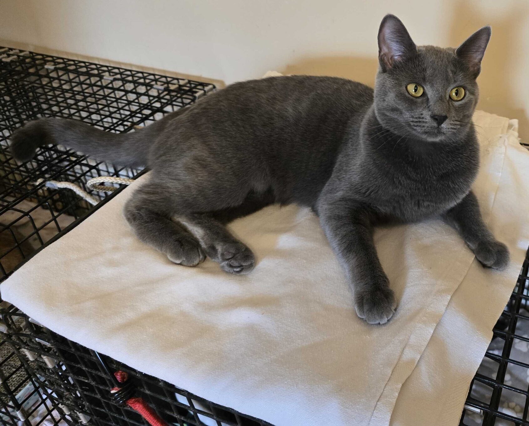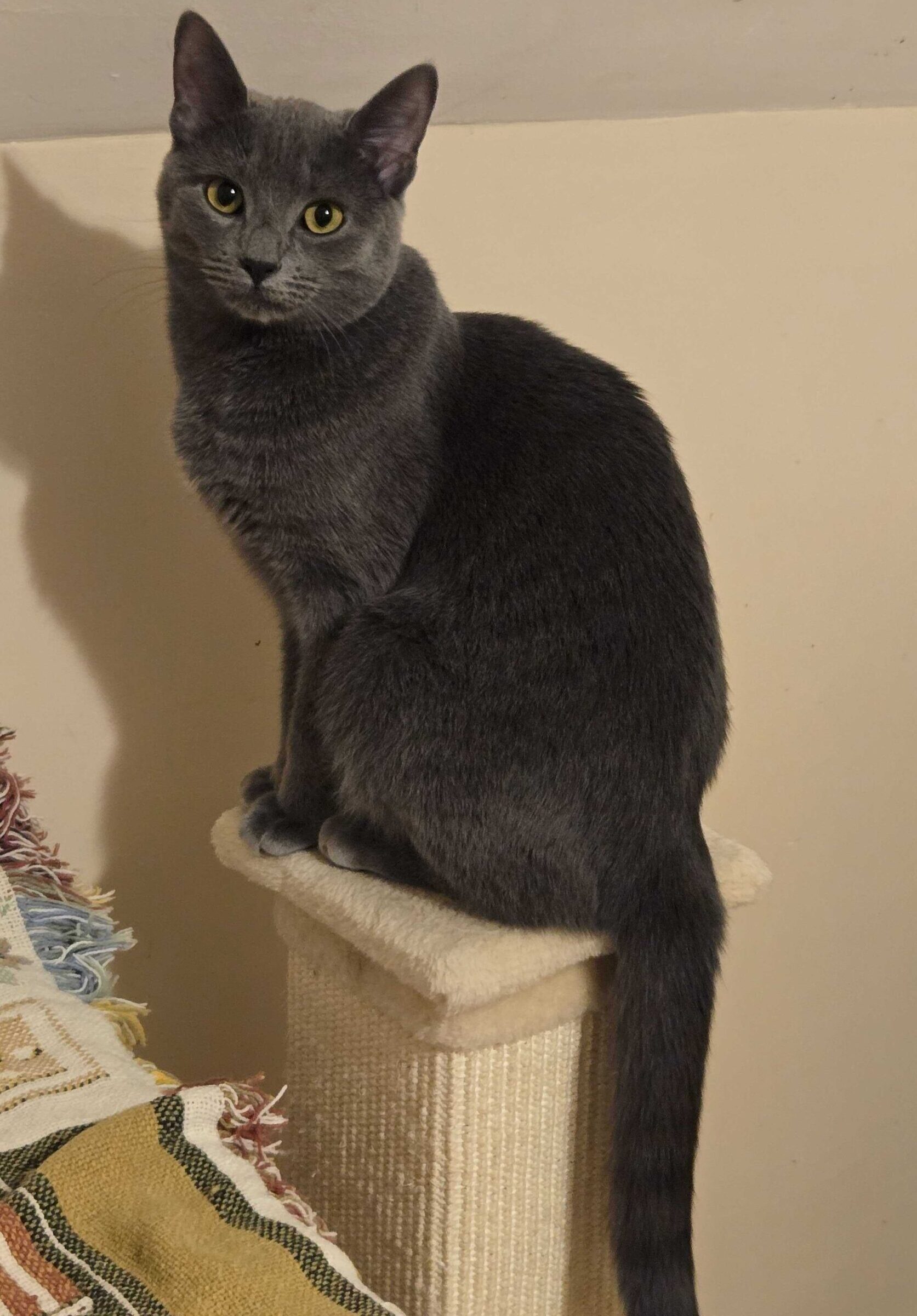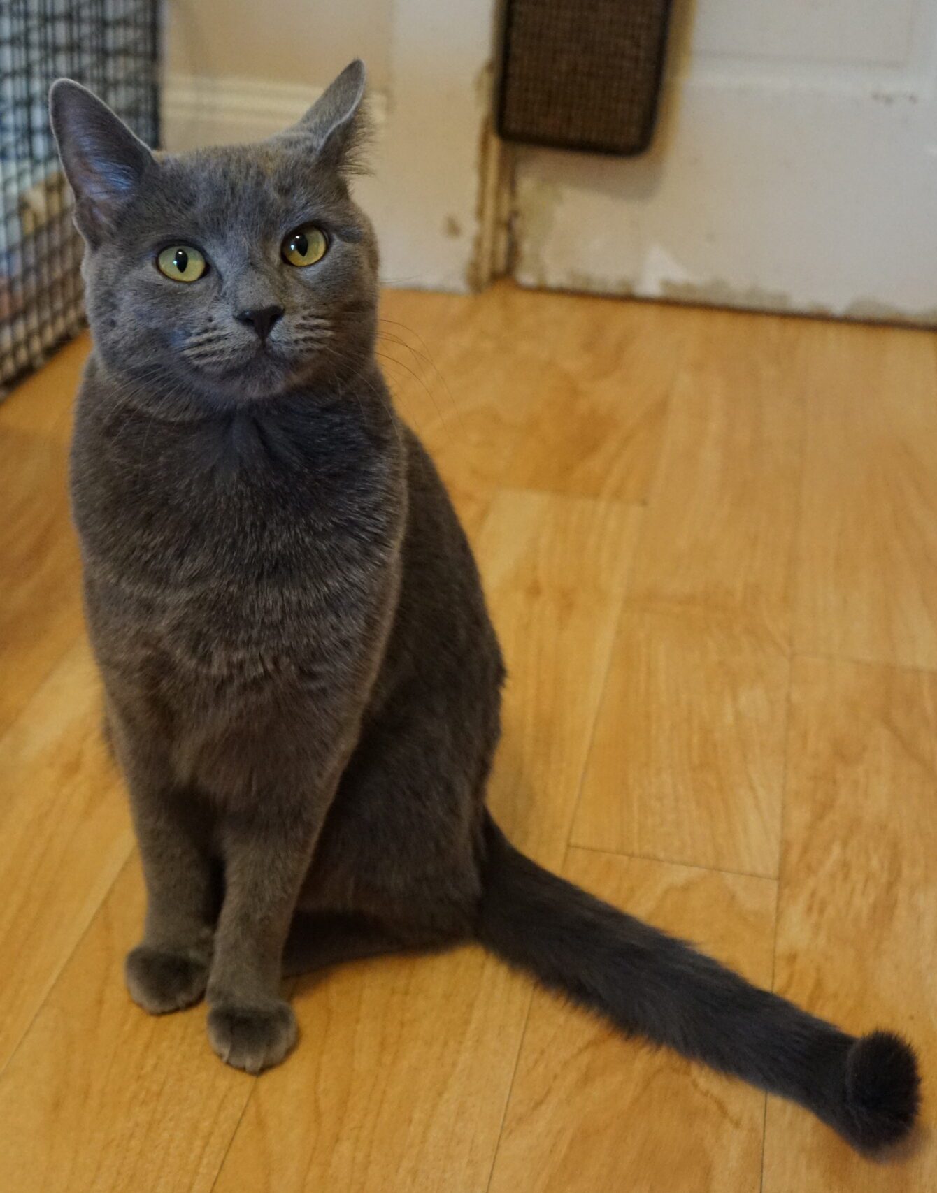 Dusty is a beautiful blue Russian mix with a lot of attitude. She likes to hunt, likes to play and loves the treats.